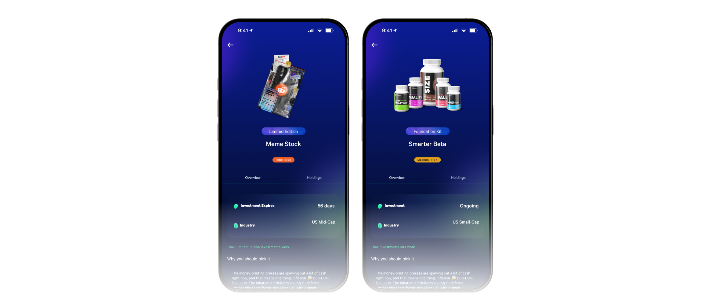 Even the imagery worked against us. Smarter Beta, the highest-return kit, was presented with supplement-bottle imagery that undermined its value. Users rarely added it—assuming the kit was comprised of fitness-related stocks as opposed to its actual holdings.
